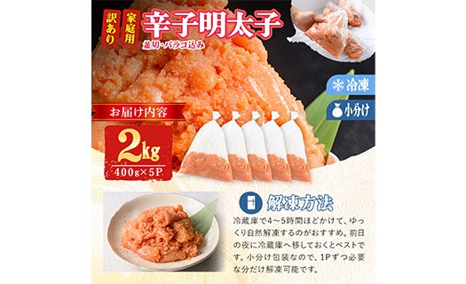 - 訳あり 辛子明太子 並切 バラコ 込み (計2kg) 訳アリ 小分け 無着色 めんたい 明太子 明太 選べる バラ子 ばら子 冷凍 大容量 個包装 海鮮 小分け 簡易包装 めんたいこ メンタイコ 切れ子 並切【BQ88】【佐伯海産】