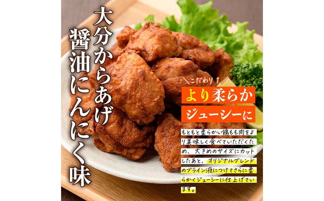 時短おかず 揚げるだけ 大分からあげ 醤油にんにく味 (計1kg・500g×2パック) 国産 鶏もも肉 肉 からあげ 唐揚げ 食べ比べ 醤油にんにく味 冷凍 惣菜 お弁当 小分け 簡単 時短 大分県 佐伯市【DH290】【ネクサ】