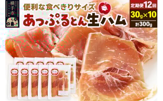 《定期便12ヶ月》秋田県横手市産 あっぷるとん 長期熟成生ハムスライス 30g×10パック