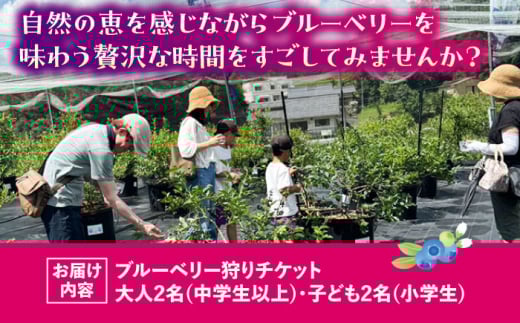 ブルーベリーファーム瑞浪 ブルーベリー狩り 90分 大人(中学生以上)2名様 ・ 子ども(小学生)2名様 チケット [AZCX003]