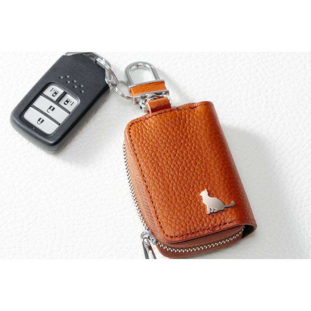 - 【ふるさと納税】【本革スマートキーケース】<カラー選択可能> ねこ おしゃれ 可愛い コンパクト スリム 猫 レザー 窓つき 収納 | おしゃれ お揃い 大きめ 可愛い カードケース キーリング 定期入れ ねこ 皮 本革 送料無料 人気 おすすめ