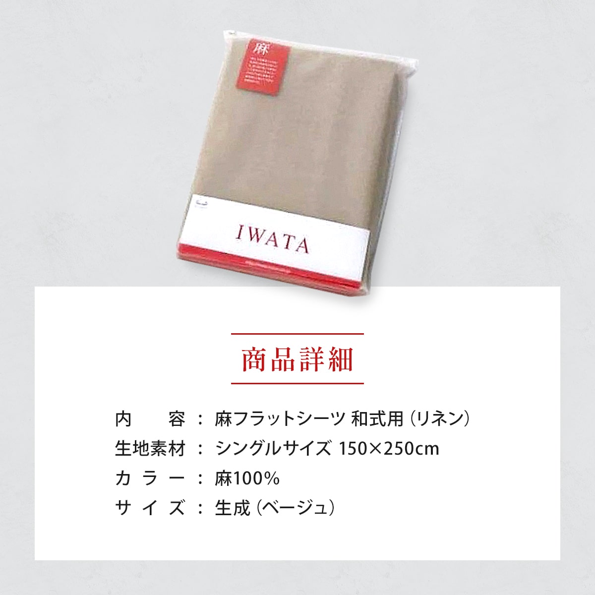 - 【ふるさと納税】IWATA 麻 フラットシーツ 和式用 シングルサイズ リネン AA043