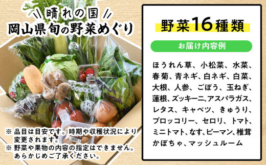 【定期便】晴れの国おかやま 旬野菜たっぷり16種〈月1回・全6回〉
