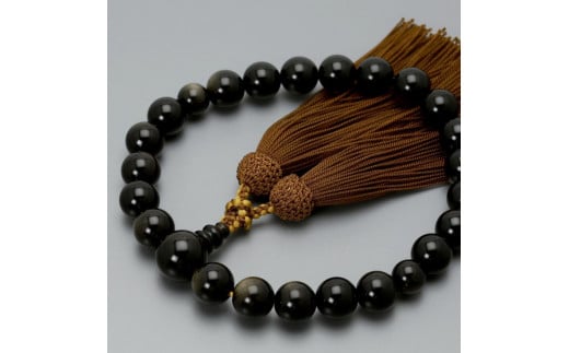 - 【京念珠】 金黒耀石 22玉 正絹頭房【土屋念珠店/男性用/メンズ/念珠/略式/3654】