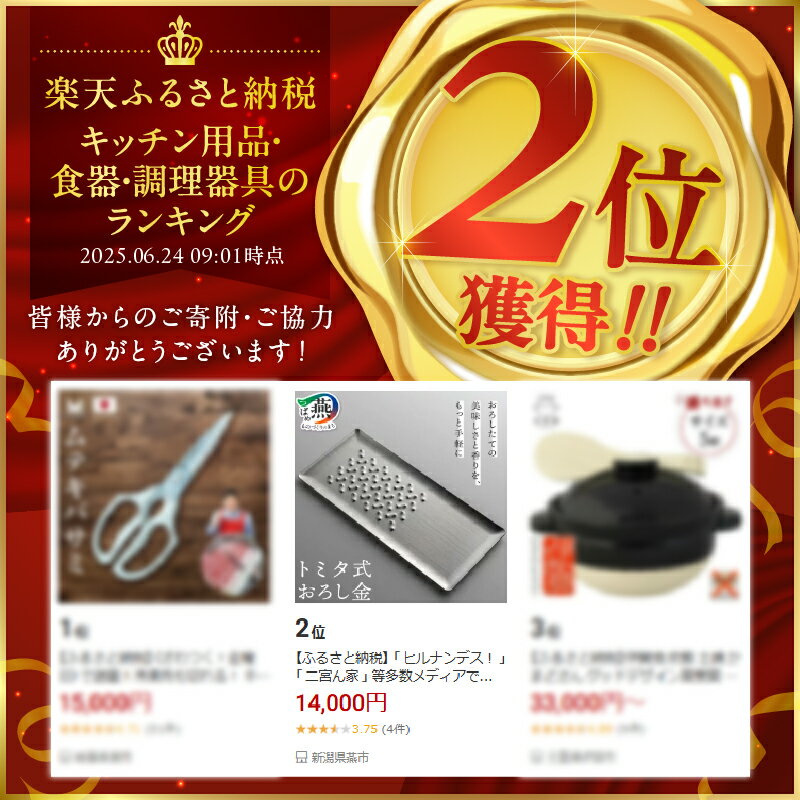 - 【ふるさと納税】 「 ヒルナンデス! 」「 二宮ん家 」 等多数メディアで紹介! トミタ式 おろし金 グッドデザイン賞受賞【トミタ式おろし金 グレーター 薬味おろし 薬味 大根おろし キッチン 料理 調理 ステンレス 安全 おろし金 おろし器 燕三条 新潟県 燕市 】 [10002044]