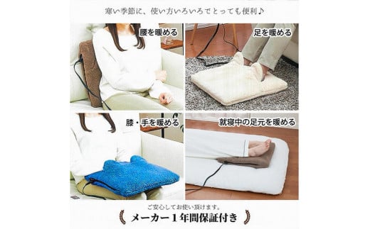 もこもこボアの暖かマルチヒーター ブルー 42×42cm SB-22MH-BL
