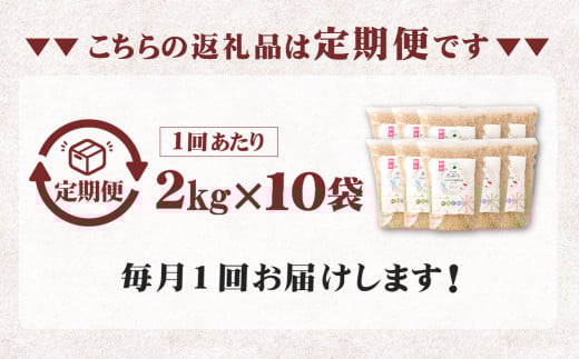 【12ヶ月定期便】阿蘇だわら (玄米) 20kg (2kg×10袋) 熊本県 高森町 オリジナル米