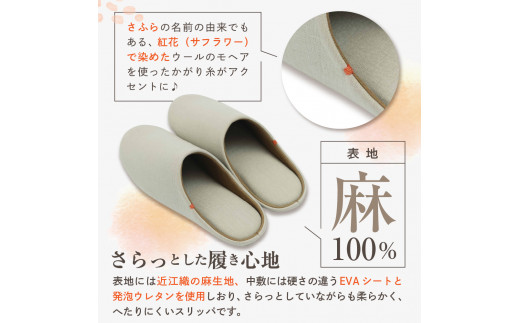 ☆ベージュ・Mサイズ☆ 麻のスリッパ「さふら」 1足