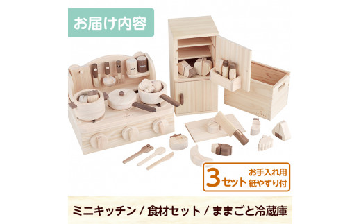 a541 姶良市産木材使用!IKONIHおままごと3点セット!【IKONIH FUKUOKA】 姶良市 知育 玩具 遊び 木遊び おもちゃ キッチン 冷蔵庫 食材 子ども 誕生日 木 木材