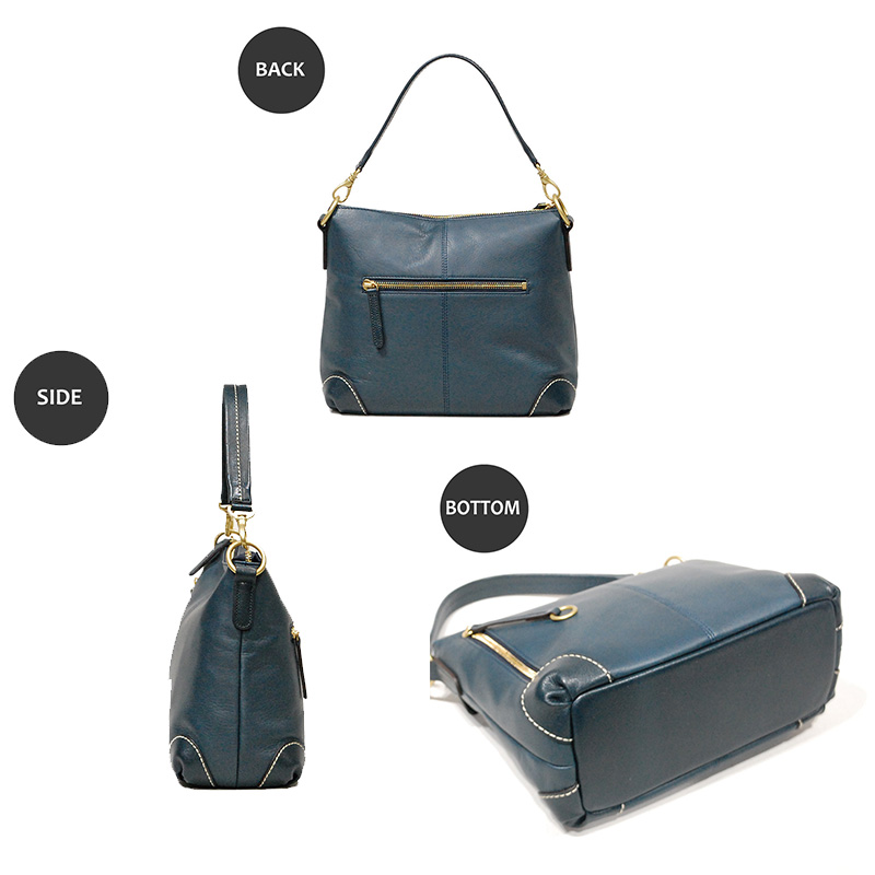 旅行にも普段使いにも最適 革と地産帆布で作ったボディバッグ 琵琶湖ブルー【CC21W】