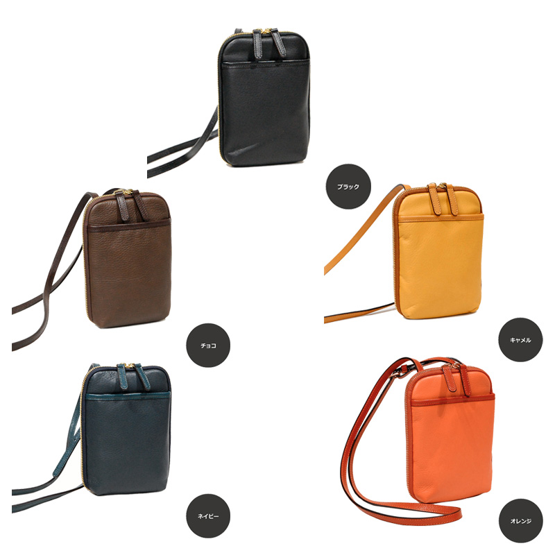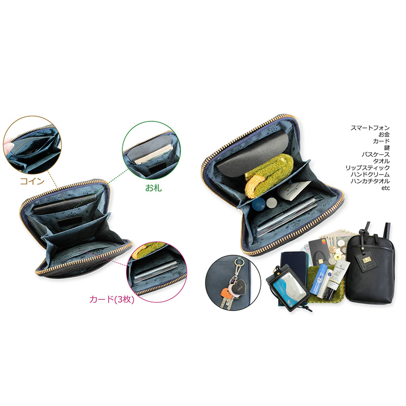 - シルキーレザー お財布機能付き スマホショルダー 【LIME】