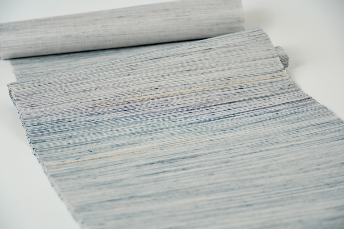 <丹後の藤布 遊絲舎>八寸名古屋帯 「藤八本」(白地に紺絣)選べるお仕立て FY00109