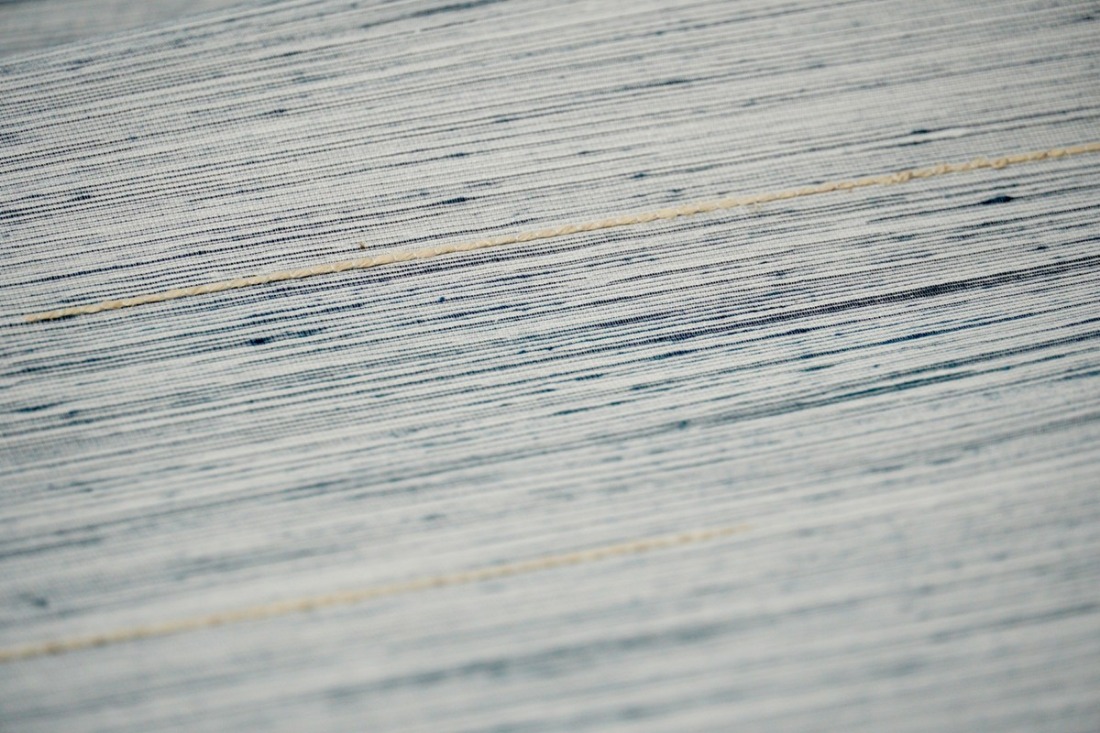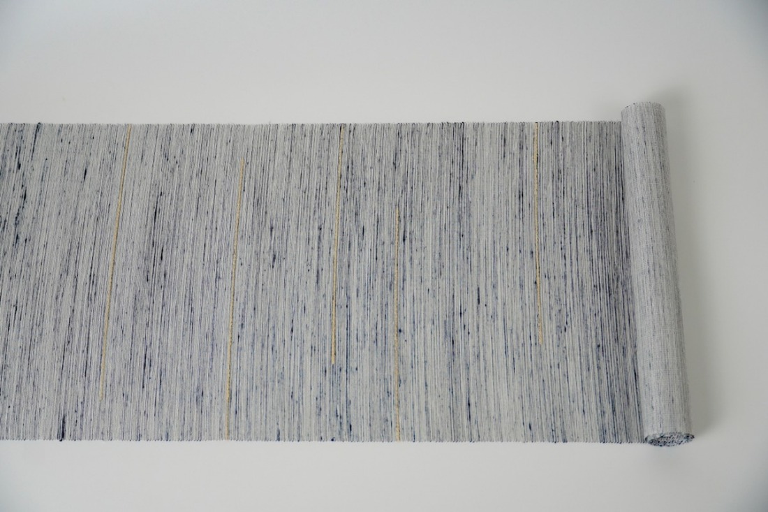 - <丹後の藤布 遊絲舎>八寸名古屋帯 「藤八本」(白地に紺絣)選べるお仕立て FY00109
