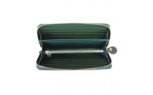 ヌメ革のミニジップウォレット ブルーグリーン[F4570]