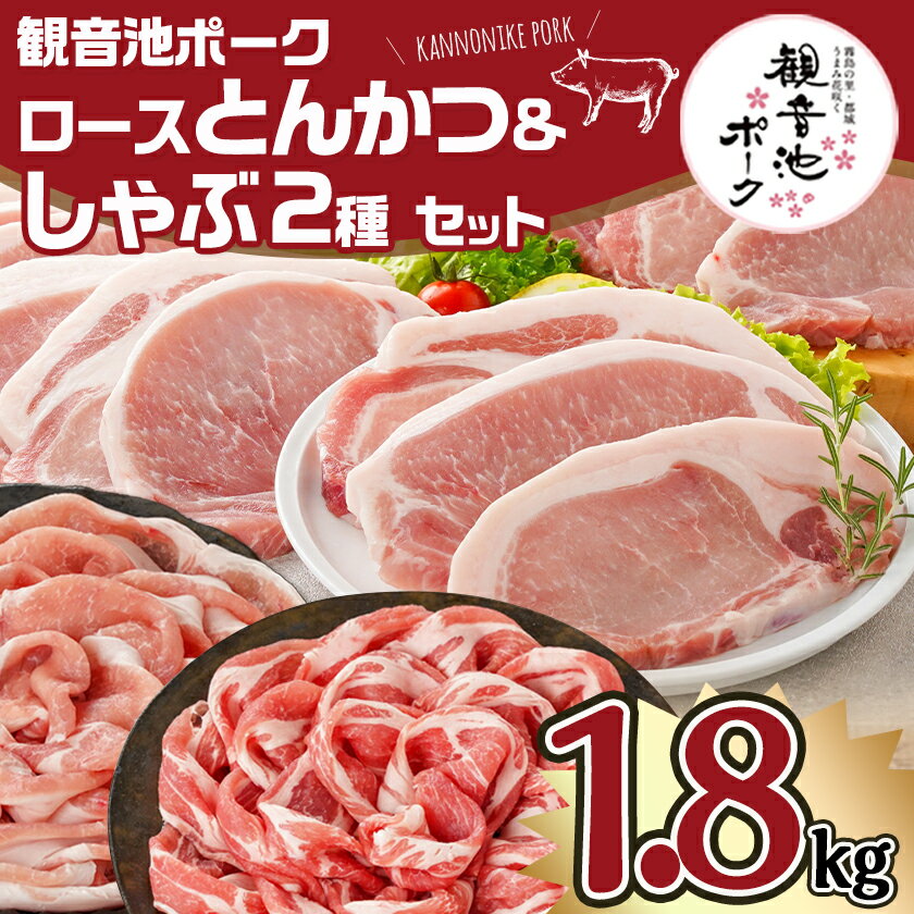 【ふるさと納税】観音池ポークロースとんかつ用【訳あり】&観音池ポークしゃぶ2種1.8kgセット - わけあり ロースとんかつ用 個包装 家庭用 不揃い 不定貫 ロース 肩ロース しゃぶしゃぶ用 豚肉セット 送料無料 12-9202 【宮崎県都城市は2年連続ふるさと納税日本一!】
