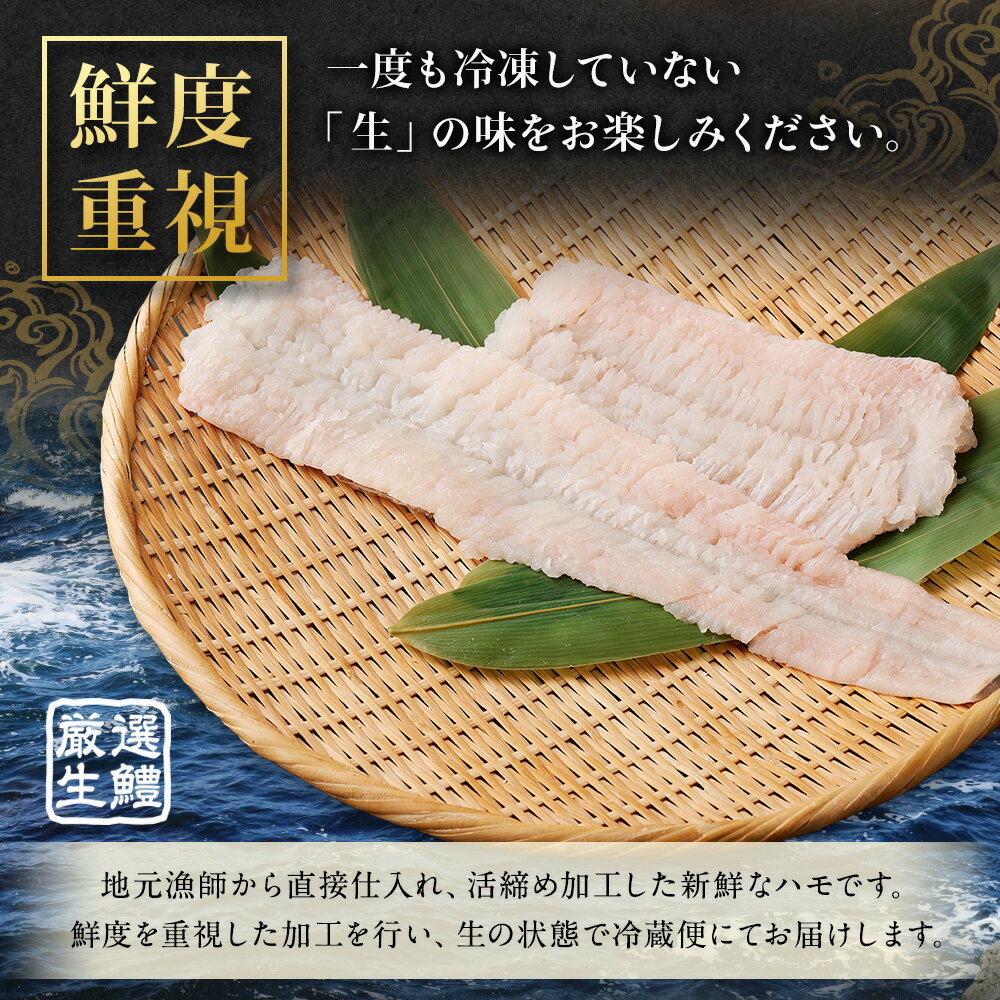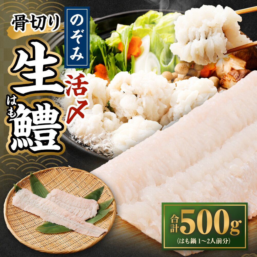 - 【ふるさと納税】のぞみ水産 活〆 骨切り 生 鱧 はも 500g【2025年5月上旬から12月上旬発送予定】ハモ 鱧 はも 天然 魚介 魚 高級 骨切り 切り身 生 冷蔵 鍋 お取り寄せ 国産 しゃぶしゃぶ 新鮮 湯引き グルメ ギフト 贈り物 贈答用 プレゼント 送料無料