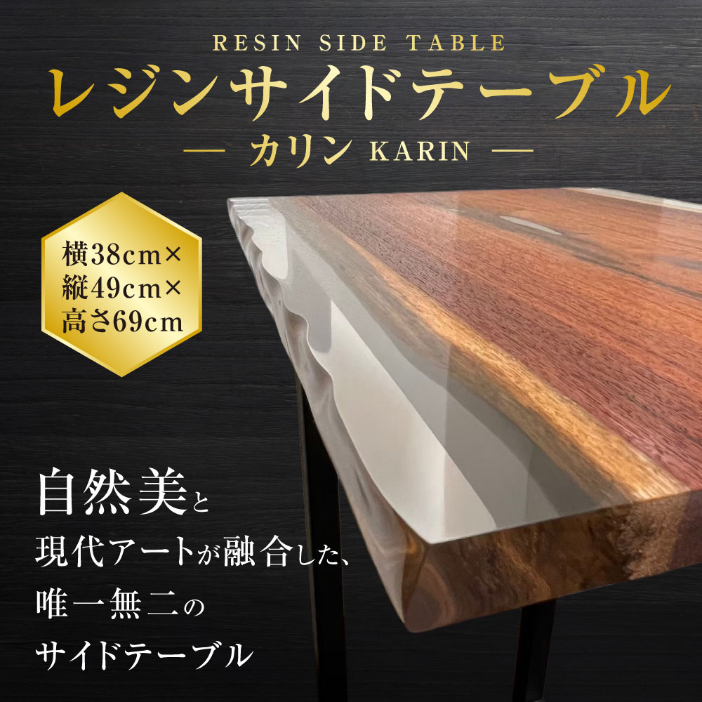【ふるさと納税】レジンサイドテーブル カリン | 横38cm×縦49cm×高さ69cm カリンの木 レジン 家具 インテリア お洒落 サイドテーブル テーブル 茨城県 守谷市 送料無料
