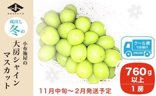 厳選プレミアム 大房 蔵出し冬のシャインマスカット 1房 760g以上[小布施屋]フルーツ 果物 長野県 ぶどう 冷蔵便 クール便 令和7年産 【2025年11月中旬~2026年2月発送】[A-505]