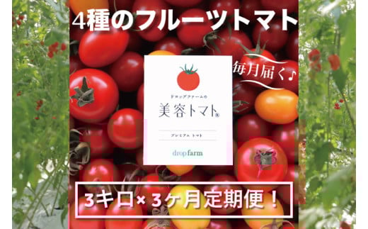 - 【3ヶ月定期便】【11月より順次発送】ドロップファームの美容トマトおまかせ3kg箱(4種ミックス)【とまと フルーツトマト 野菜ソムリエ 栄養士 アイコ イエローアイコ 小鈴 フルティカ 野菜 フレッシュ 水戸市 茨城県】(CK-114)