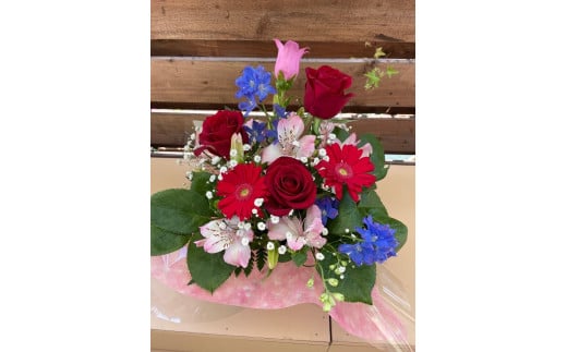 バラをメインとした季節変わる生花アレンジメント(レッド系)