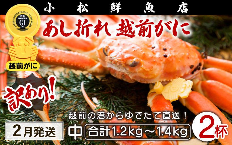 - 【訳あり】足折れ 越前がに 中サイズ × 2杯(1杯600~700g)地元で喜ばれるゆで加減・塩加減で越前の港から直送!【雄 ズワイガニ ずわいがに 姿 ボイル 冷蔵 福井県】【11月発送分】希望日指定可 備考欄に希望日をご記入ください [e23-x012_11]