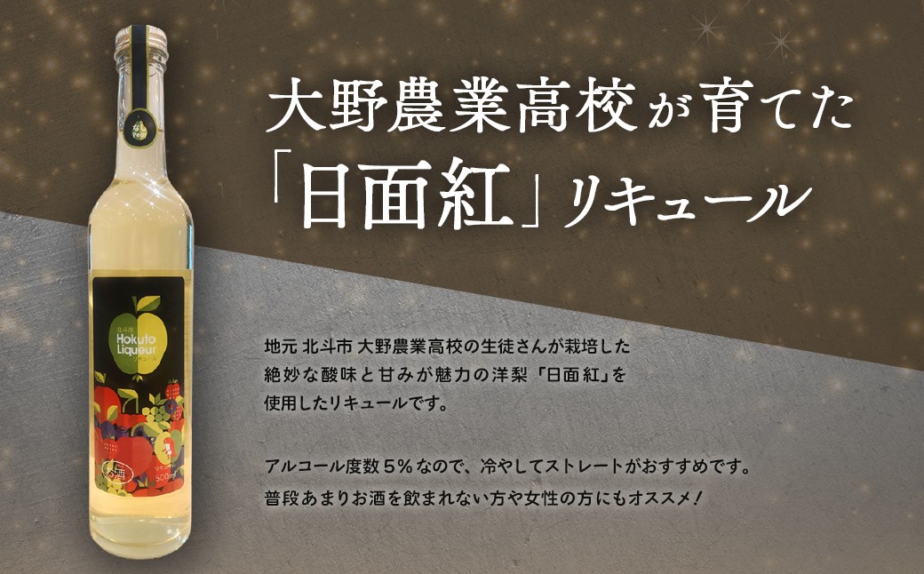 大野農高 日面紅 梨リキュール500ml 【 ふるさと納税 人気 おすすめ ランキング 日面紅 梨 なし リキュール お酒 酒 アルコール 5% カクテル ストレート 北海道 北斗市 送料無料 】 HOKAS003