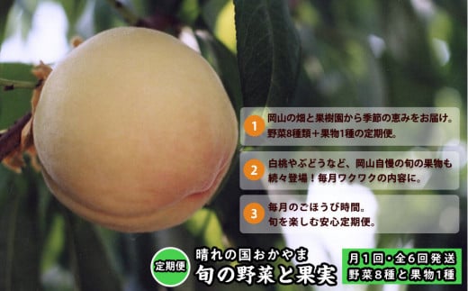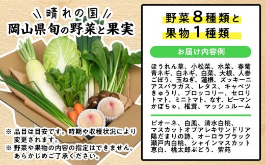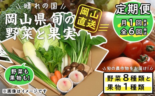 【定期便】晴れの国おかやま 旬の野菜8種と果物1種〈月1回・全6回〉