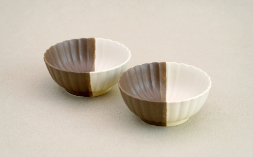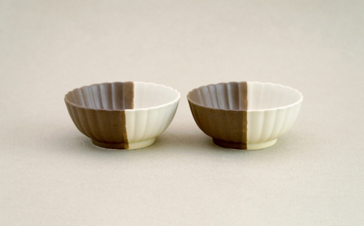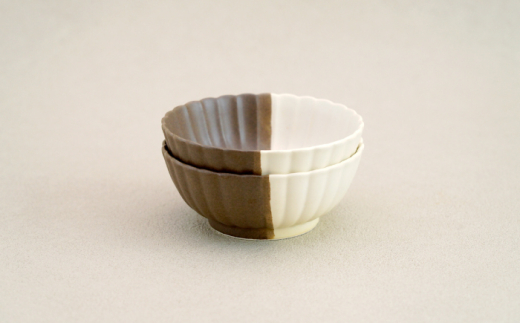 - 【波佐見焼】花しのぎ 小鉢 ペア ハーフカラー (栗/白)【団陶器】 [PB183]
