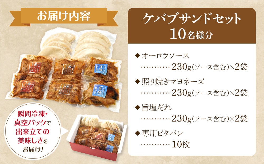 - ケバブサンド セット 約10名分 ケバブチキンステーキ 230g×6食 ピタパン×10枚 肉料理 鶏肉 温めるだけ 惣菜 お手軽 簡単 ギフト 贈り物 ホームパーティー