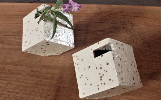 - 花器 キューブ(小) 白 【一輪挿し 手作り 陶器 オブジェ インテリア 癒し 贈り物】(H038124)