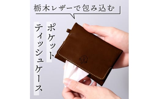 【ブラウン】ポケットティッシュケース HUKURO 栃木レザー
