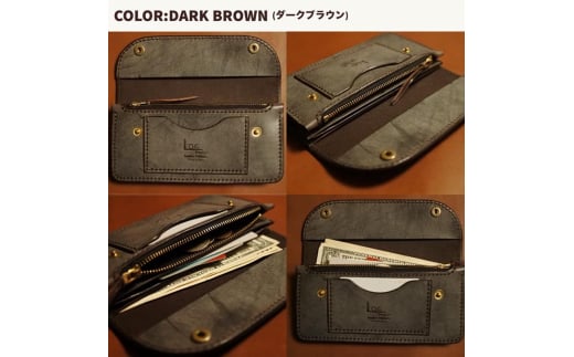 【ダークブラウン】財布 高級ブライドルレザー ロングトラッカーウォレット 手縫い カラー3色【ダークブラウン ブラック バーガンディ】|革 革製品 長財布 ロングウォレット ファスナー付き メンズ レディース ハンドメイド