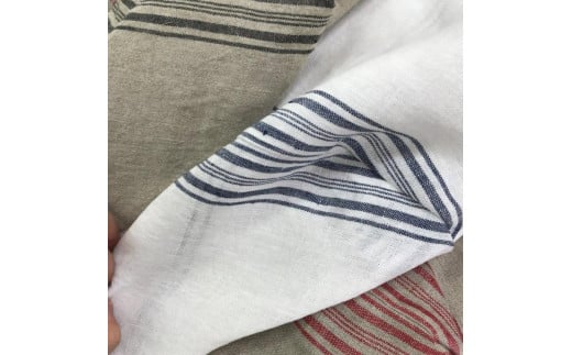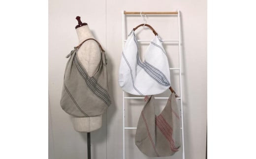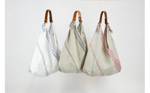 - 織物のワンマイルバッグ エコバッグ (本牛革製ハンドル付き) ホワイト×ネイビー