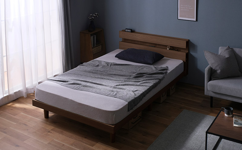 - すのこベッド ウォールナット ベッド SNBS-SD アイリスオーヤマ セミダブル すのこ ベッド スノコ ベッドフレーム ヘッドボード 収納 棚 コンセント付き