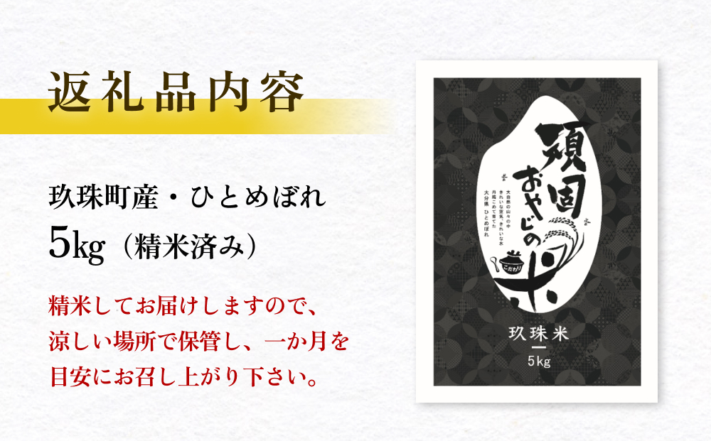 <先行受付>【令和7年 玖珠産・ひとめぼれ 精米 5kg】頑固おやじのこだわり米(精米済み・減農薬) 大分県産 米 令和7年産 頒布会 米 単一米 限定 国産 お米 即納 精米 コメ こめ