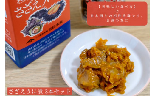- 粒 うに ウニ 雲丹 さざえ 栄螺 うに漬 瓶うに 55g 3本 セット 常温 ギフト 贈答品 下関市 山口