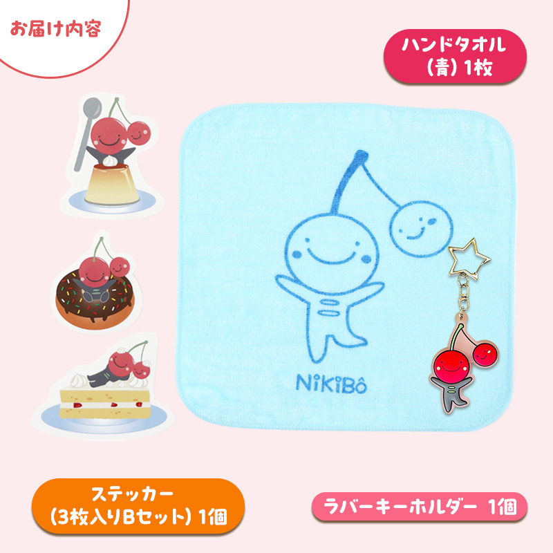 【ニキボー】グッズ3点セット(ハンドタオル・ステッカー・ラバーキーホルダー)【 仁木町 ご当地 ゆるキャラ タオル 雑貨 小物 日用品 】[仁木町観光協会]