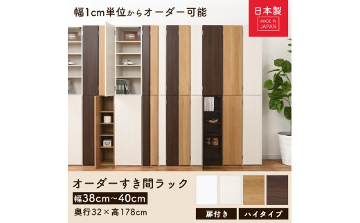 - 【国産家具】オーダーすき間ラック〔幅38cm・扉付き・ハイタイプ〕(ホワイトウッド)オーダーラック 隙間収納 ハイタイプ 幅 約 収納棚 扉付き スリム 隙間 キッチン 洗面所 木製 すきま収納 オーダー 棚 cd dvd 収納 薄型 ラック 隙間収納ラック ABE400099-38-WWO