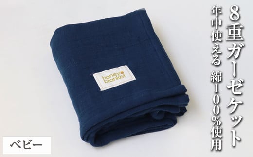 【ネイビー】日本製 8重ガーゼケット ベビーケット 年中使える ベビーサイズ 85×115cm 綿100%使用|オーガニックコットン 綿100% オールシーズン 毛布 速乾 快眠 快適 熟睡 睡眠 洗える 洗濯可能 丸洗い可能 ベビー 赤ちゃん 乳幼児