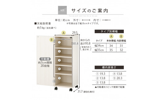 - 【国産家具】オーダーすき間ラック〔幅35cm・キャスター・扉付き・ロータイプ〕(ホワイト)すき間ラック 収納棚 約 奥行32 高さ96 扉付き キャスター付き スリム ロータイプ 本棚 縦長 棚 オーダーラック 隙間収納 キッチン ラック 扉付き本棚 薄型 木製 扉付 5段 ABE400111-35-WH