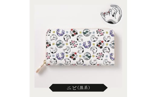 - 【浅草文庫】ラウンド長財布〈猫柄〉(カラー:ニビ(黒系))