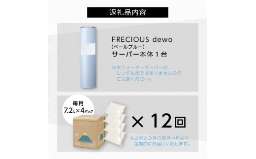 【定期便】ウォーターサーバーFRECIOUS dewo+水定期便(年12回お届け)ペールブルー water 富士山の天然水 ウォーターサーバー 天然水 定期便 山梨 富士吉田