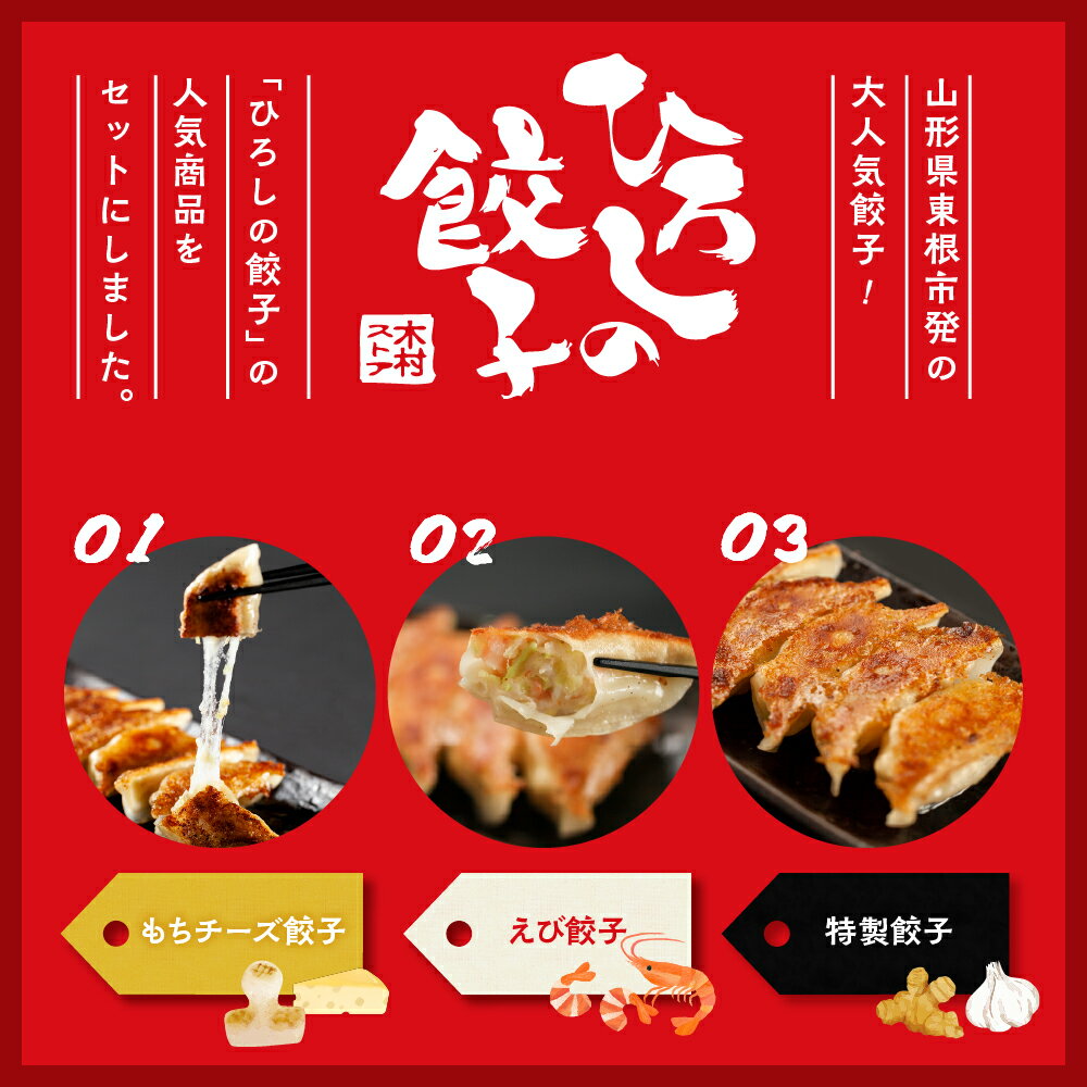 - 【ふるさと納税】ひろしの餃子 満喫セット(もちチーズ餃子10個、特製餃子16個、えび餃子20個)惣菜・加工品
