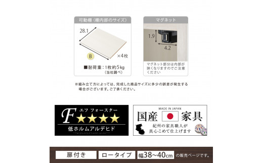 - 【国産家具】オーダーすき間ラック〔幅40cm・扉付き・ロータイプ〕(ホワイトウッド)すき間ラック 収納棚 扉付き スリム 約 奥行30 高さ90 ロータイプ オーダーラック キッチン 洗面所 ラック 薄型 木製 オーダー 棚 扉付 5段 隙間収納 ABE400088-40-WWO