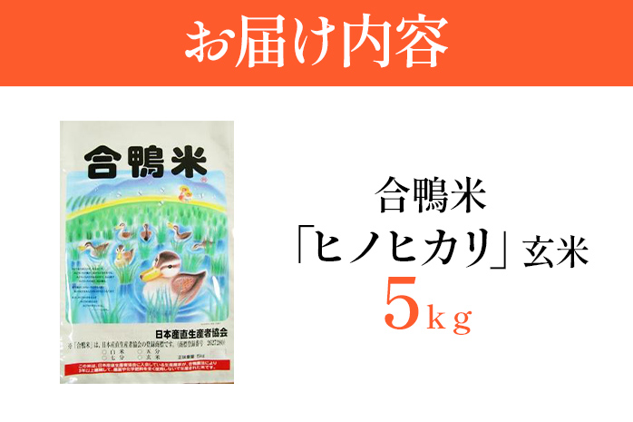 令和7年産 新米予約 合鴨米「ヒノヒカリ」(玄米・5kg) ※2025年10月より順次出荷予定 BI03