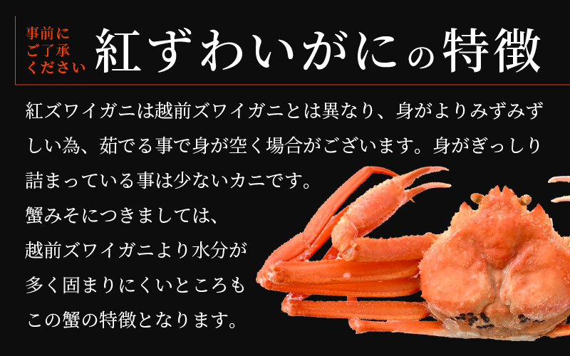≪浜茹で≫越前産 紅ずわいがに 約900g × 2杯 食べ方しおり付【紅ズワイガニ カニ かに 蟹 姿 ボイル 冷蔵 福井県】【3月発送分】希望日指定不可 [e14-x001_03]