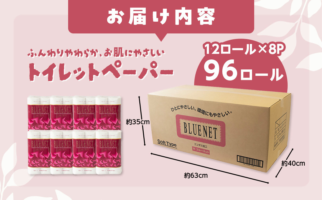 河村製紙 再生紙100% ブルーネット トイレットペーパー ダブル 12Rx8パック