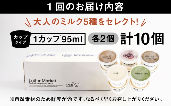 ジェラート アイス 【全6回定期便】糸島で行列のできる アイスクリーム 屋 ジェラート カップ 10個 セット! 大人の味 5種類 × 各2個 ( ミルク , 抹茶 , ほうじ茶 , カフェオレ , ブルーベリーヨーグルト ) 糸島市 / LoiterMarket ロイターマーケット アイスクリーム [AGD021]