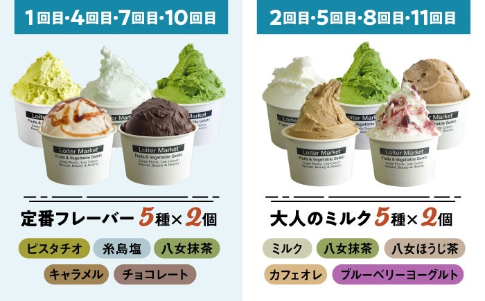 ジェラート アイス 【 全12回 定期便 】 カップ 10個 × 8回 / お楽しみ ボトル 2個 × 4回 セット 糸島 / LoiterMarket ロイターマーケット [AGD012] アイスクリーム