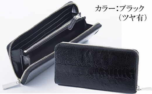 レッグ革(ブラック・ツヤ有)ラウンド財布【高級素材の代名詞!オーストリッチ革】 [No.107-01]